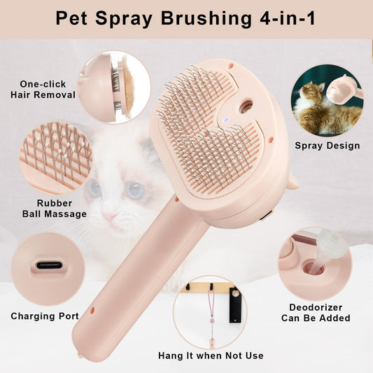 Puffi - 4 in 1 Spray Brush for Long & Short Haired Cat&Dog, Hair Remover with Water Tank and LED Blue Light